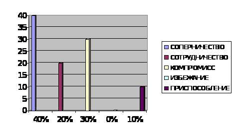 Таким образом, большинство учащихся имеют низкий уровень реагирования в конфликте и используют формы выхода из него неблагоприятные для формирования сплочённого общественно активного коллектива.