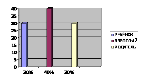 30% учащихся выбрали состояние «взрослый»: Плужникова Ольга, Назаров Александр, Малакей Антон.