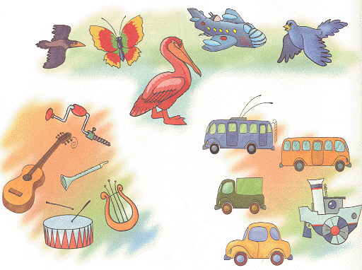 Предметы разделены на группы по каким-то общим признакам. Попросите ребенка назвать каждую группу одним словом, а затем найти лишний, не подходящий к другим предмет. Игра позволяет развить у детей способность к обобщению предметов.