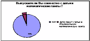 Кроме этого, принимая во внимание результаты проведенной нами анкеты для практикующих учителей и устных бесед с некоторыми из них, мы решили во втором экспериментальном классе провести такой вид внеклассной работы как выпуск стенной математической газеты. Причины выбора нами именно такой формы внеклассной работы указаны в предыдущем параграфе данной работы. Перед нами стояла цель не только провести данную внеклассную работу и проверить ее эффективность с точки зрения развития математических способностей школьников, но и разработать методику проведения подобного рода работы. Необходимость этого мы видим в связи с недостатком подобных рекомендаций в учебно-методической литературе, о чем тоже говорилось выше.