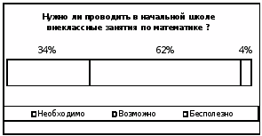 Как показал проводимый нами эксперимент, практикующие учителя в большинстве не проводят внеклассную работу по математике со своими учениками, за исключением внесения элементов занимательности в сам урок. Будущие же учителя неплохо усвоили, что именно следует понимать под математическими способностями учеников, однако не до конца осознали необходимости проведения целенаправленной и систематической внеклассной работы. Ученики же начальных классов любят этот предмет, большинству он дается без особых затруднений.