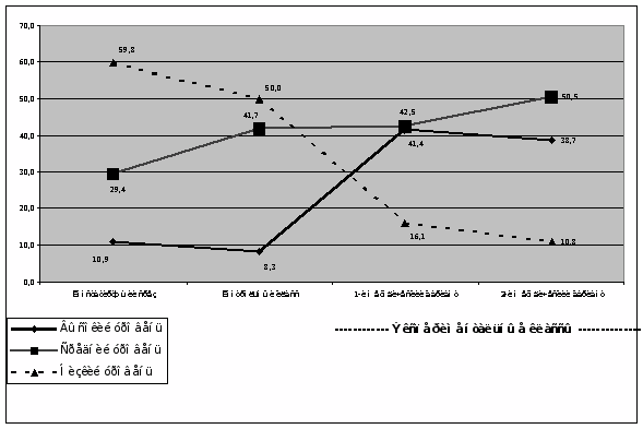 Рисунок 1. Динамика развития музыкально-творческих способностей первоклассников в процессе эксперимента