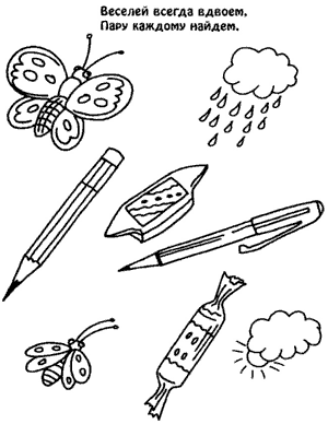Инструкция: разложи картинки на четыре группы. В каждой группе картинки должны подходить друг к другу так, чтобы их можно было назвать «одним словом».