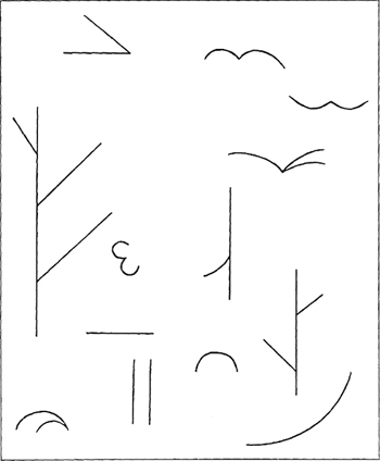 Дорисуй линии и фигуры так, чтобы получился волшебный лес со своими обитателями.