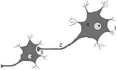 Рис.3. Строение нервной клетки: 1 - дендриты; 2 - аксон; 3 - синапс; 4 - тело нейрона