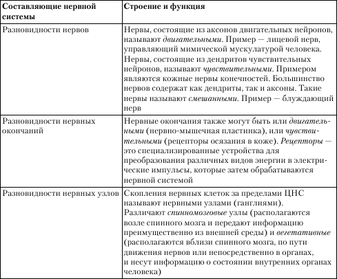 Более подробно строение и функция отдельных составляющих нервной системы человека показано в табл.2.