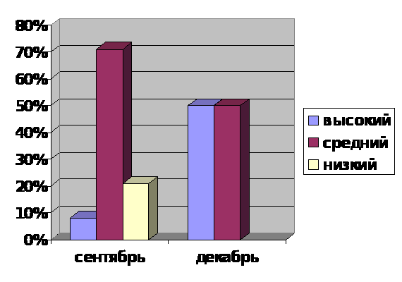 Вначале работы с детьми была проведена диагностика «Психомоторное развитие ребёнка» по методике А.Бурениной и критериев оценки результатов театрально-игровой деятельности, разработанных Н.Ф. Сорокиной (приложение 4). Диагностика показала, что речь детей не достаточно выразительна, слабо используются детьми средства выразительности (мимика, жесты, движения), дети не умеют взаимодействовать с партнёром. По результатам диагностики высокий уровень развития театрально- игровой деятельности отмечался только у 8% детей, средний -71%, низкий уровень развития показали 21% детей, поэтому возникла необходимость создания системы работы по развитию творческих способностей посредством театрализации.