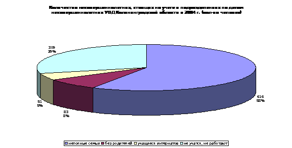 По данным официальных источников [12], в Калининградской области в 2004 г. на специальном учете состояли в УВД 750 несовершеннолетних из группы риска, а 685 - из "благополучных" семей. Данные отражены на рисунках 1 и 2.