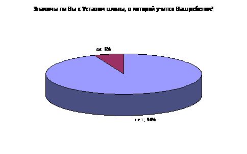 Опрос 90 студентов заочной формы обучения, получающих второе высшее образование в одном из коммерческих вузов (все - родители детей разного возраста, были даже 2 бабушки) показал, что большинство опрошенных в большей степени имеют представление о правах родителей и детей, чем об обязанностях, не знакомятся с Уставом школы, в которой учатся дети, будущее детей видят в идеале "за границей", что также является показателя ми правового нигилизма в родительской среде. Результаты опроса отражены на рисунках 3-5.