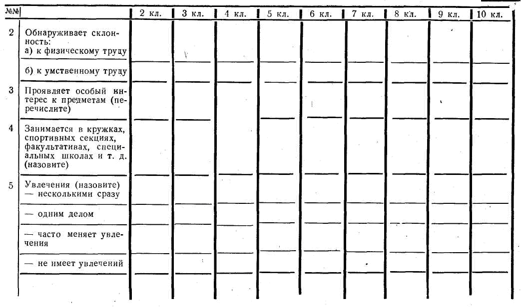 В конце учебного года записи систематизируются в вид кратких выводов, в которых находят отражение наиболее существенные сдвиги в формировании профессиональных интересов учащихся.