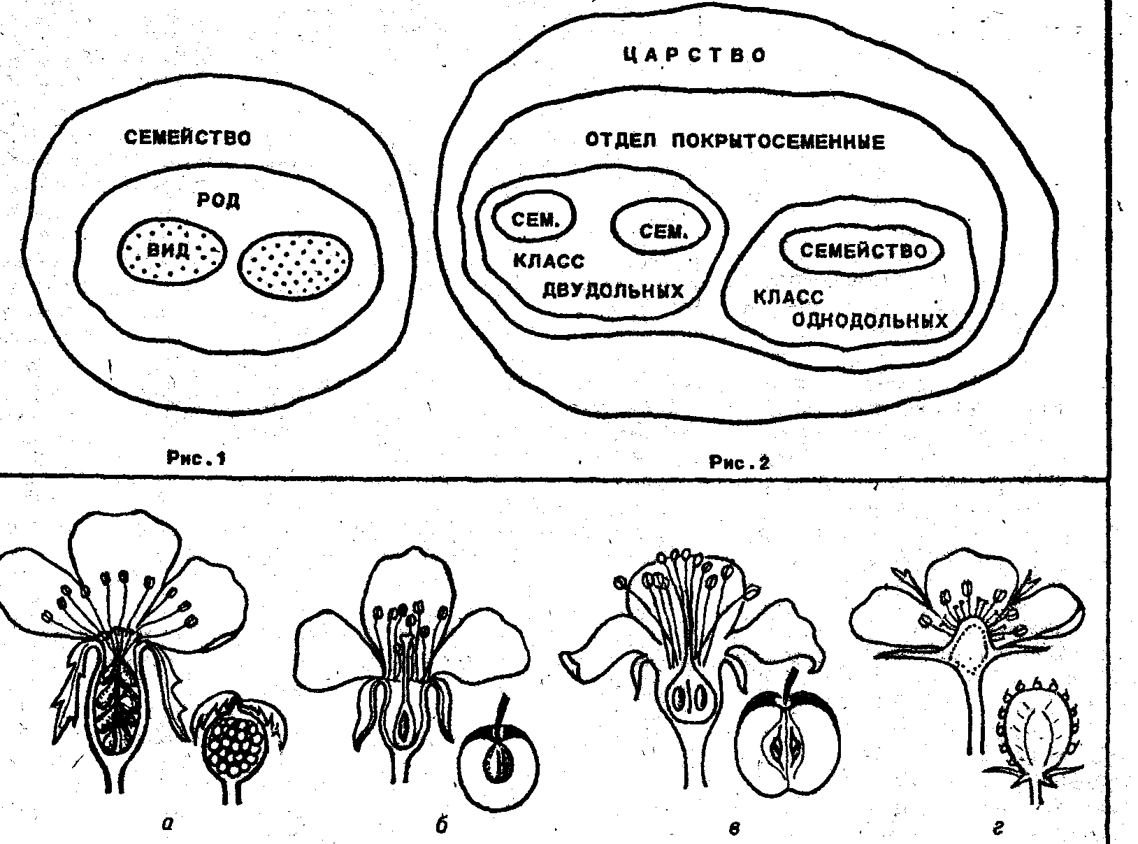 Формируя понятия «род» и «семейство», учитель рассказывает, что растения близкородственных видов объединяются в роды. Например, виды яблоня домашняя, яблоня китайская, яблоня мелкоплодная — близкородственны. Но как ни сходно строение этих видов яблонь, можно найти и черты отличия. Это размеры и окраска цветков, плодов, сроки цветения и созревания плодов и т. п. Поэтому их нельзя отнести к одному виду. Однако большое число общих признаков, свидетельствующих о родстве, позволяет объединить их в один род — Яблоня. Род яблони вместе с близкородственным ему родом груши объединяют в семейство Розоцветные семейство — крупная) систематическая группа, объединяющая сходные по происхождению роды. Семейство Розоцветные с другими близкородственными ему семействами относят к классу двудольных растений.