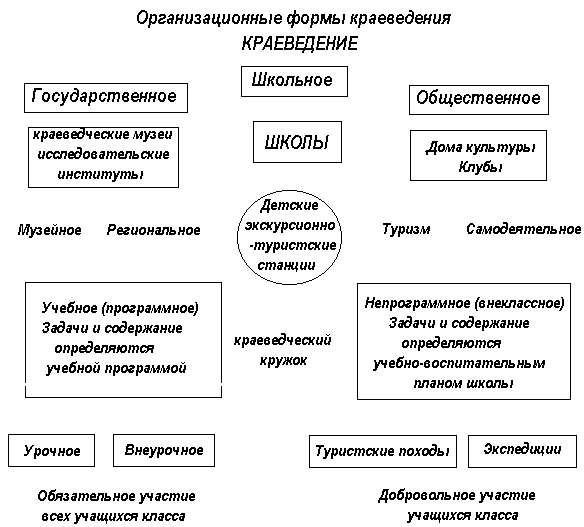 Исходя из задач краеведение необходимо различать по формам его организации. В процессе развития сложилось государственное, школьное и общественное краеведение.