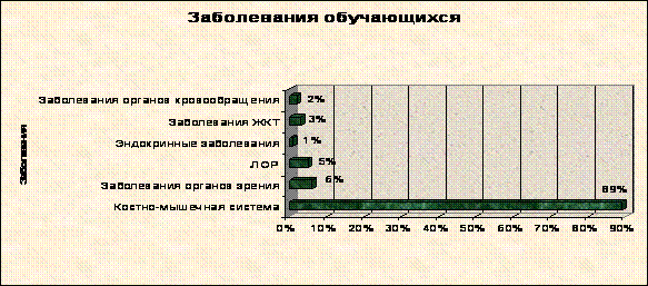 Здесь тревогу вызывает увеличение числа учащихся сверх положенной нормы, согласно проекту здания школы, влечет за собой травматизм детей, снижение слуха, отсюда — снижение качества обучения. Нарушения осанки являются одним из наиболее встречающихся заболеваний опорно-двигательного аппарата школьников. Одной из наиболее распространенных причин нарушения осанки у детей, особенно в период усиленного роста, это недостаточное развитие мускулатуры и длительная статическая нагрузка в условиях неправильного положения тела. Недостаточный уровень освещенности увеличивает нагрузку на зрительный анализатор и провоцирует неправильную позу во время сидения. Удельный вес измерений школьной мебели, которая не соответствует росту учеников, составляет в среднем 17,4%. Среди учащихся за последние три года наблюдается рост заболеваний опорно-двигательного аппарата. Работа школы в этом направлении ведется малоэффективно.