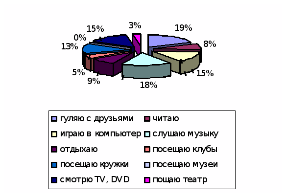 Вид деятельности в структуре досуга девочек 14 - 15 лет
