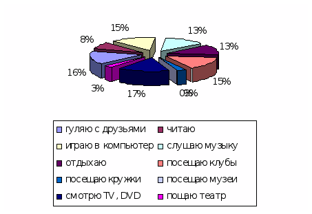 Вид деятельности в структуре досуга девочек 16 - 17 лет