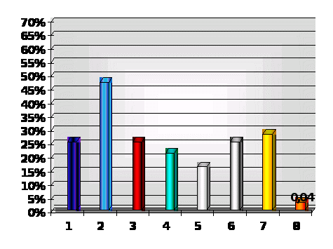 Таким чином за допомогою цього графіку ми можемо бачити, що найбільше діти цього класу бояться тварин та комах. Трохи менше – вчителів, поганих оцінок, школи. жахів, вогню, пожежі, крові, лікарів – однаково. Найменше бояться темряви. У одного з учнів виявили індивідуальний страх, це виявився страх сну.