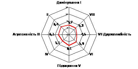 Октант І отримав по групі 5.7 – Авторитарний тип відносин. Упевнена у собі людина, але не обов'язково лідер, завзята і наполеглива.
