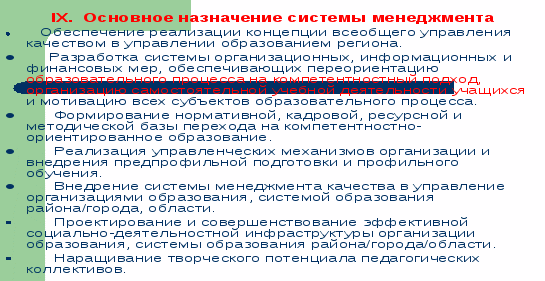 На слайде №6 в качестве примера представлено основное назначение системы менеджмента.