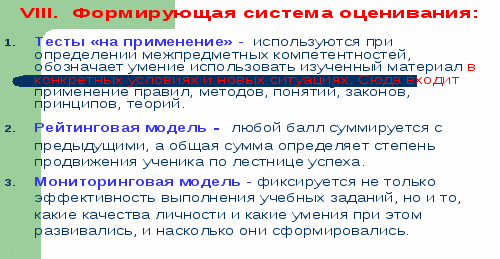 Ситуация кардинального изменения приоритетов казахстанского образования, появление новых результатов образования настоятельно требуют создания новой системы оценивания этих результатов – личностных результатов, способов деятельности (компетентностей), освоенных учащимся на том или ином этапе обучения. В компетентностно-ориентированном казахстанском образовании система оценивания становится прежде всего формирующей. Формирующее (внутреннее) оценивание нацелено на определение индивидуального прогресса каждого учащегося и не предполагает как сравнения результатов, продемонстрированных разными учащимися, так и административных выводов по результатам обучения. Новая система оценивания - это целенаправленная, систематическая и непрерывная оценка, и самооценка степени реализации: