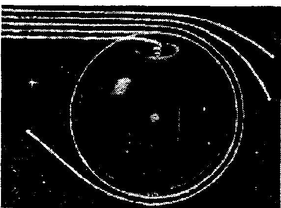 Квазары удалены от нас на миллиарды световых лет. Галактики же, в том числе и галактики с активными ядрами, в среднем расположены ближе. Следовательно, это объекты более позднего поколения, они должны образоваться вслед за квазарами. Возможно предположение: не являются ли квазары протоядрами будущих галактик? При попытке ответить на данные вопросы родилась гипотеза о черных дырах. Сущность ее заключается в следующем. Если некоторая масса вещества оказывается в сравнительно небольшом объеме, критическом для нее, то под действием сил собственного тяготения такое вещество начинает неудержимо сжиматься. Наступает своеобразная гравитационная катастрофа – гравитационный коллапс. В результате сжатия растет концентрация массы. И наконец наступает момент, когда сила тяготения на ее поверхности становится столь велика, что для ее преодоления надо было бы развить скорость, превосходящую скорость света. Такие скорости практически недостижимы, и из замкнутого пространства черной дыры не могут вырваться ни лучи света, ни частицы. Излучение черной дыры оказывается «запертым» гравитацией. Черные дыры способны только поглощать излучение. На рис. 2.1 изображена воображаемая картина прохождения лучей вблизи черной дыры. Луч, проходящий на близком расстоянии от нее, поглощается, а более отдаленные лучи искривляются.