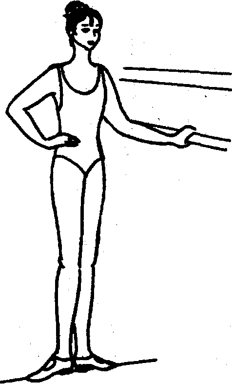 Нога на пятку выставляется сильно согнутой в подъёме так, чтобы носок смотрел вверх; корпус прямой. На носок - нога легко выставляется в перёд, наискосок [ по диагонали ] или в сторону.