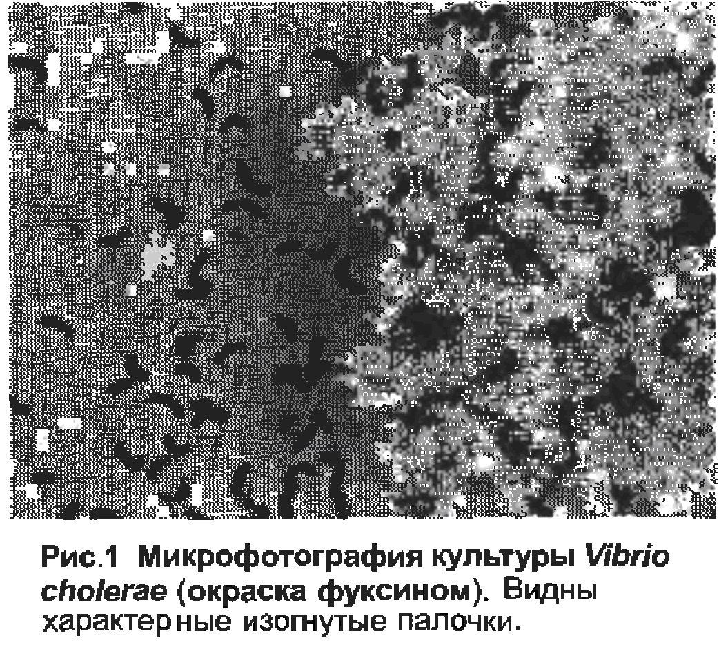 Изучение рода Vibrio позволило эффективно бороться с инфекционными заболеваниями, возбудителями которых являются некоторые его представители, в частности вид V.cholerae вызывающий холеру. Он представляет собой палочку в виде запятой размером 1,5-4,0 x 0,2-0,4 мкм, имеет один полярный жгутик, снабжён чехликом и продольным выростом, напоминающим ундулирующую мембрану. Не образует спор и капсул. Разлагает ферментацией многие углеводы с образованием кислоты и принадлежат к 1-й группе Хёйберга (манноза+, арабиноза–, сахароза+), обладает плазмокоагулирующим и фибринолитическим свойствами, свёртывает молоко и разлагает другие белки до аммиака и индола, H>2>S не образует, восстанавливает нитраты и образует индол. Хорошо растёт на простых питательных средах с высоким рН (7,6-8,0) ― 1 % щелочная пептонная вода, щелочной МПА, элективные и дифференциально-диагностические среды (например TCBS-arap). [3]