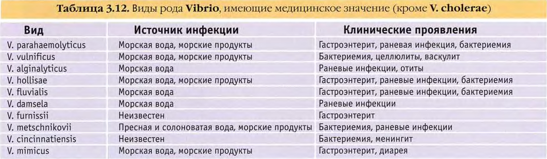 Таблица 6. Виды рода Vibrio, имеющие медицинское значение (кроме V.cholerae).