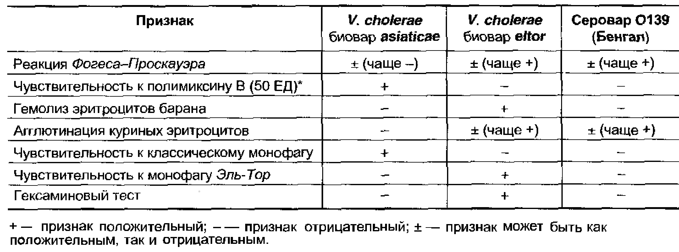 Признаки, разграничивающие биовары Vibrio cholerae, приведены в таблице 3. [4]