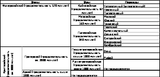 Вся история существования Земли подразделяется на временные отрезки, для каждого из которых характерны определенные физические, химические, климатические условия, а также этапы эволюции живой природы.