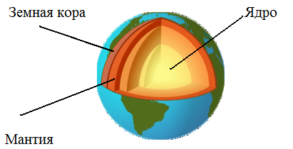 Мантия распространяется до глубины 2900 км. Она подразделяется на 3 слоя: верхний, промежуточный и нижний. Верхний слой – астеносфера, характеризуется относительно малой вязкостью вещества. В астеносфере находятся очаги вулканов. Понижение температуры плавления вещества астеносферы приводит к образованию магмы, которая по трещинам и каналам земной коры может изливаться на поверхность Земли. Промежуточный и нижний слои находятся в твердом, кристаллическом состоянии.