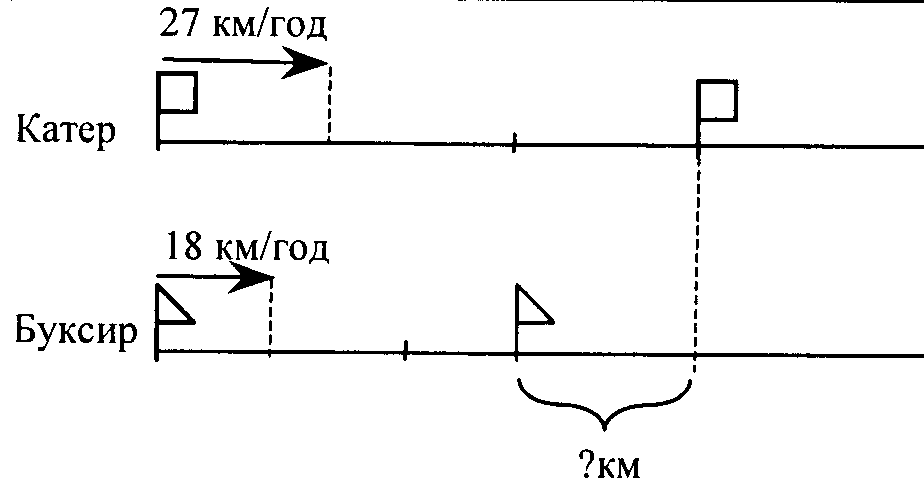 визначати власну швидкість катера визначати швидкість катера за течією визначати швидкість катера проти течії визначати швидкість зближення і час зближення, коли катер наздоганяє пліт визначати швидкість зближення і час зближення, коли катер рухається назустріч плоту визначати швидкість віддалення і час віддалення, коли катер і пліт рухаються з одного пункту у протилежних напрямках |