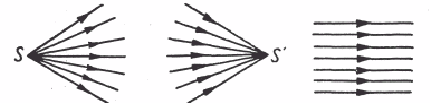 Із світної точки S, як із спільного центра промені розходяться в усіх напрямах (мал. З, а). Такий пучок променів називають розбіжним гомоцентричним пучком (тобто розбіжним пучком,що має спільний центр). Якщо примусити хоча б частину променів розбіжного гомоцентричного пучка знову перетнутися в одній точці S′ (мал.3, б), то вона й буде зображенням світної точки S.