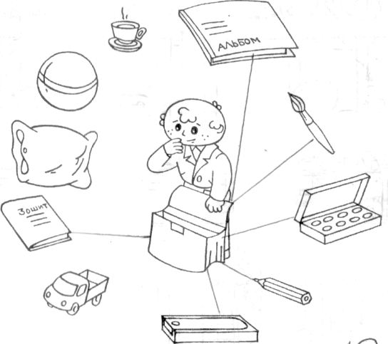 На демонстраційному столі - портфель, книжка, зошит, олівець, ручка, пенал, лялька, лінійка, іграшковий автомобіль тощо. Учитель пропонує назвати речі, а потім запитує: „Які із цих предметів не потрібні для навчання? Як їх назвати одним словом? Що учень візьме із собою до школи? ”. З допомогою вчителя першокласники усвідомлюють, що речі, необхідні їм у школі, називаються навчальним приладдям. Учитель пропонує назвати інші відомі предмети з виучуваного ряду.