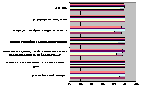Мониторинг здоровьесбережения на уроке, основанный на Анкете качества урока Е.А. Юниной и А.И. Севрука, дает возможность сделать вывод о том, что в нашей школе к здоровью учащихся педагоги подходят серьезно и строят уроки на основе здоровьесберегающих технологий.