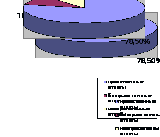 Таким образом, общее количество нравственных ответов - 314 из 400 возможных (78,5%); безнравственных – 42 из 400 возможных (10.5%); неопределенных - 44 из 400 возможных (11%).