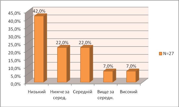 Низький рівень розвитку концентрації і стійкості уваги виявлений у 14% дівчат.