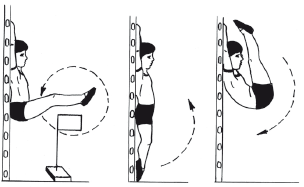 4. Многократно повторяющееся одновременное поднимание выпрямленных ног из положения лежа на спине или виса на перекладине или шведской стенке.