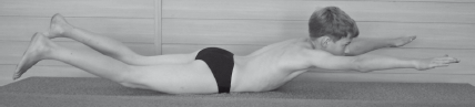 И. п. – Лежа на животе, руки вверх. Ребенок разгибает спину, одновременно отрывая от опоры выпрямленные и слегка разведенные верхние и нижние конечности, и удерживает их в этом положении в течение 15–30 с (рис. 1).