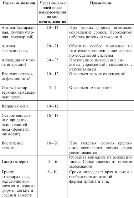 ♦ Занятия лечебной физкультурой. По индивидуальным показаниям в период заболевания и в первые 2 месяца после него.