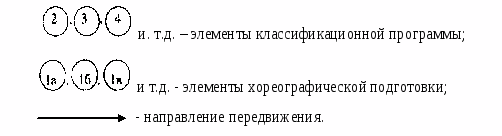 В целях лучшего усвоения изучаемого материала, умения анализировать и зрительно воспринимать составляемую композицию студентам предлагается следующая схема записи, при описании которой необходимо указать вид спорта, разряд, применяемый в постановке классический, народный танец или современный стиль движений.