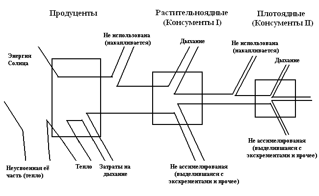 Рис. 5. Схема распределения энергии среди продуцентов и консументов