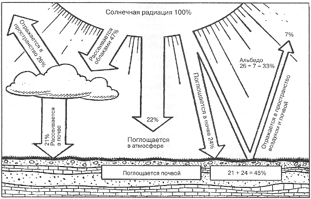 Единственным источником энергии для существования экосистемы и поддержания в ней различных процессов являются продуценты, усваивающие энергию солнца. Солнечная энергия поглощается в биосфере неравномерно, что можно видеть на рис. 4.