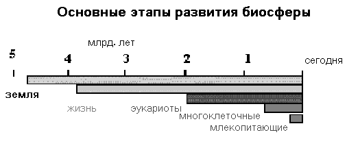 В развитии биосферы условно можно выделить несколько этапов, каждый из которых отмечен важным прогрессивным продвижением; которые в конце привели к образованию современного состояния биосферы (рис. 3).