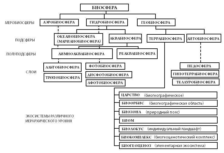 В биосфере выделяют следующие структурные уровни (рис. 1):