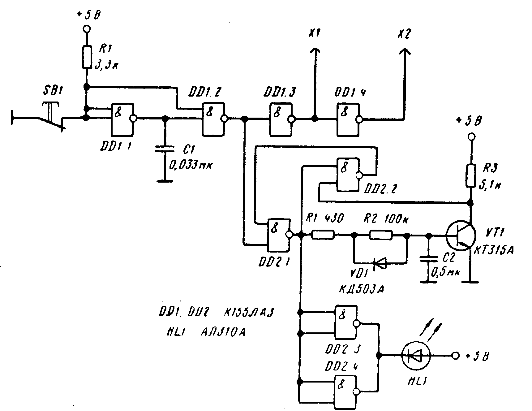 Одночасно з пострілом включається в роботу вузол А9 (рис. 29). На його вході стоїть мультивібратор, виконаний на елементах DD1.1 i DD1.2. Запускається він імпульсом, який формують динамічні головки.