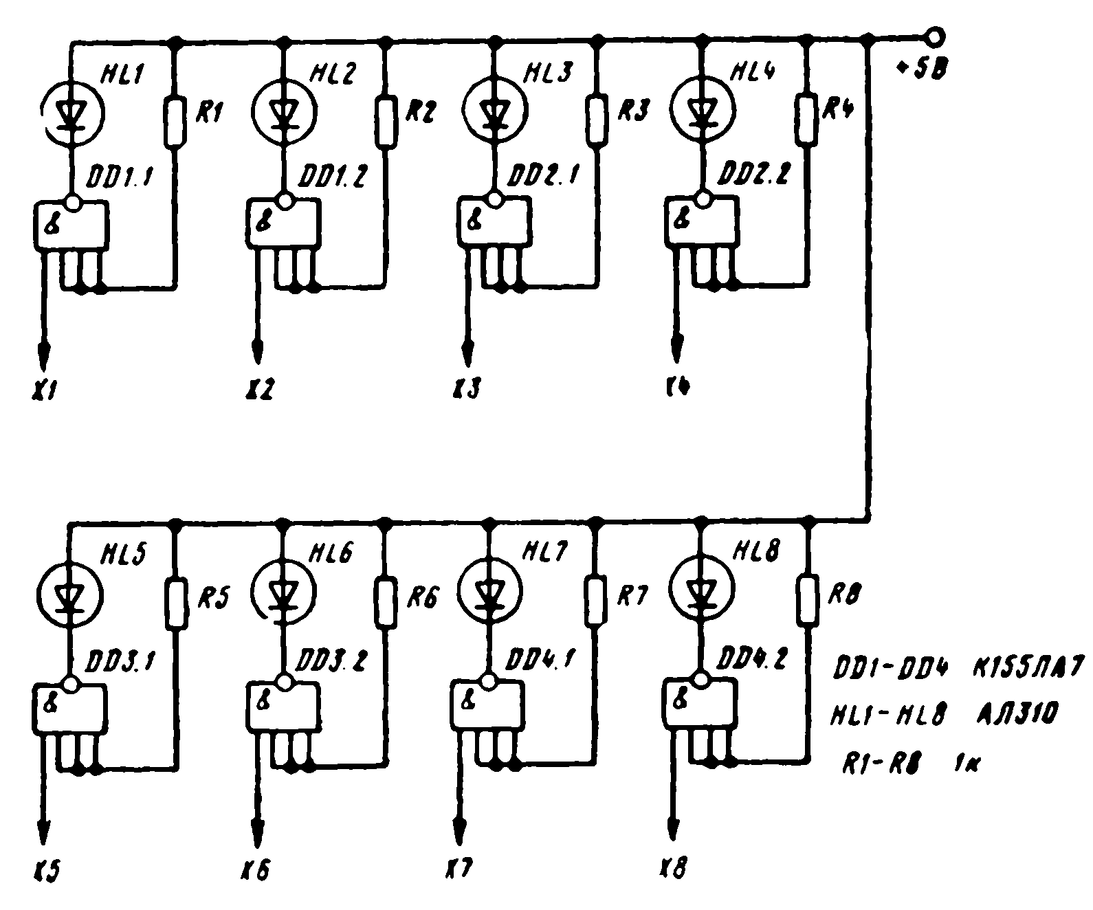 На рис. 22 показано схему випромінювача ІЧ променів, модульованих частотою мультивібратора, виконаного на елементах DD1.1, DD1.2 мікросхеми DD1 типу К561ЛЕ5.