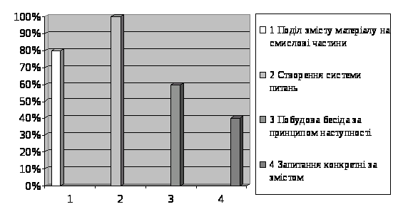 Постановка запитань активізує учнів, дозволяє залучати до роботи дітей з різною підготовкою, враховувати їхні індивідуальні можливості.