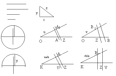 1) Если на вспомогательном чертеже не удается непосредственно заметить необходимые для решения связи между данными и искомыми элементами, то целесообразно ввести в чертеж вспомогательные фигуры: соединить уже имеющиеся точки прямыми, отметить точки пересечения имеющихся линий, продолжить некоторые отрезки и т.д. Иногда бывает полезно проводить параллели или перпендикуляры к уже имеющимся прямым.