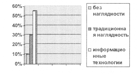 Часто учебники или другие печатные пособия имеют ссылку на исторические памятники, изображение которых в них отсутствуют. Проводить урок по теме "Культура" не имеет смысла, если перед глазами учащихся не имеются зрительные образы. Усвоение материала в данном случае будет иметь очень низкий процент (10%). Урок с использованием традиционных наглядных средств обучения значительно повышает этот процент (30%). При применении на таких уроках мультимедийных программ наблюдается значительный рост усвоения материала, чем при применении традиционных наглядных средств обучения. (>50%).