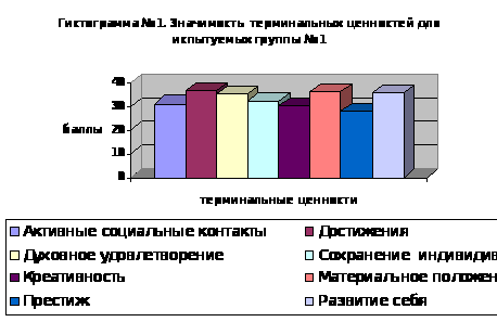 Приложение3. Гистограммы и таблицы, отражающие значимость терминальных ценностей и жизненных сфер для испытуемых трех групп